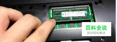 轻轻压下内存条,当听到“叮”的一声,表示卡槽已经卡好了内存条。 此时内存已经正确插入电脑