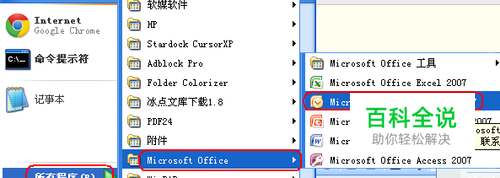 单击屏幕左下角任务栏左边的“开始”按钮,选择“所有程序”,在弹出的菜单上选择“Microsoft Office”: