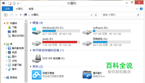 首先打开一个文件夹或者点开我的电脑或者,到下图的界面。