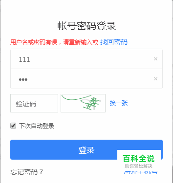 打开百度网盘的登录界面,填写账号和密码,尝试登陆,会发现登录界面提示:账号或密码错误,请重新输入或找回密码。