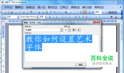 当我们都设置好以后,点击确定即可,这时在文档中就会看到我们插入的艺术字效果。
