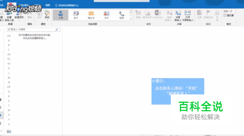 双击打开Outlook软件,点击联系人图标,点击”开始“,点击”新建联系人“,输入联系人详细信息,点击保存并关闭。