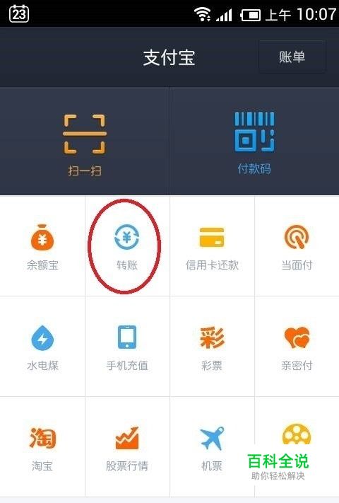 需要说明的是,在转账页面中的中间部分,是用来记录历史的转账对方的信息的,包括转到支付宝账号或者银行卡都会记录下来,如果有需要,你可以直接点击进行付款,不用再重新输入哦,对于转账、支付的历史,我们可以在首页右上角的“账单”中进行查看: