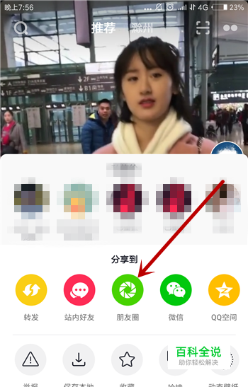 在转发里面就可以看到【朋友圈】的选项,点击后会提示我们现在不能直接分享,这时候会把视频保存到相册中。