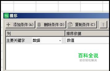 弹出自定义排序的对话框,鼠标点击数值的下拉按钮