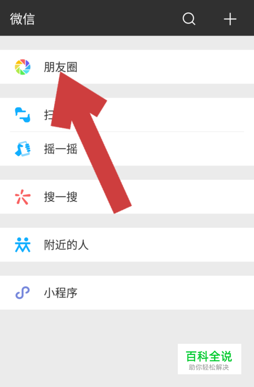 进入微信的发现页后,点击”朋友圈“一栏,进入微信朋友圈动态页面。