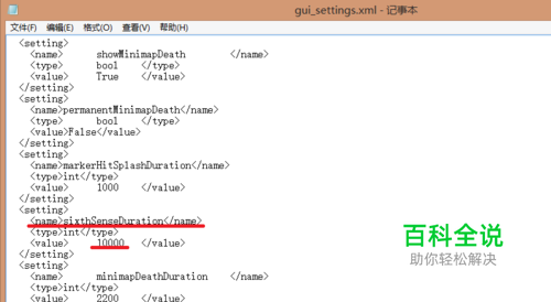 右键点击文件编辑找到如图红线所示“sixthSenseDuration” “10000”即是灯泡显示时间,1000=1秒