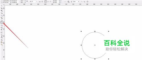 然后画出嘴巴的形状。可以画一个圆形,选择属性栏中的弧形。 然后用鼠标拖动两个端点的位置就可以得到一个嘴巴的形状了。 还可以使用三点曲线工具,画一个直线,向下拉这样更加简便。 将轮廓加粗一点。这样嘴巴就画好了。弧度稍微大一点。