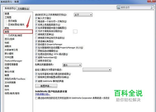 在弹出的“系统选项(S)—普通”界面中找到并单击“草图”,如下图所示: