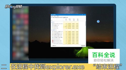 在进程中,找到“explorer.exe”,然后点击“结束进程”。