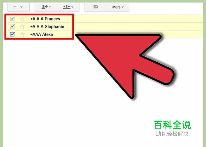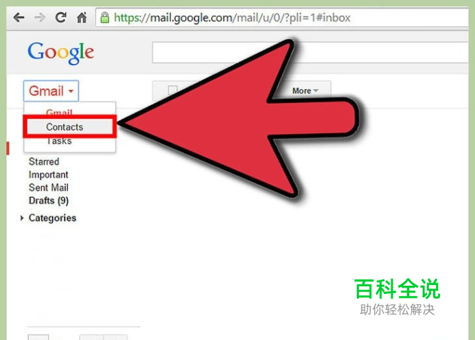 单击网页左上角的 Gmail 链接。链接的旁边有一个指向下方的箭头图标。在出现的菜单中,选择“联系人”,载入联系人管理器。