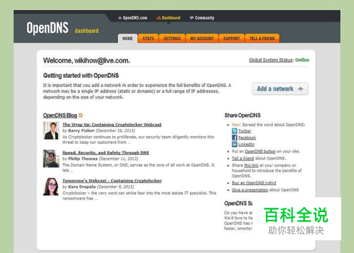 注册openDNS,openDNS可以免费在家使用,但是一个更强大的版本只能免费用于办公。openDNS装在你的路由器上面,它会影响整个网络流量。这意味着它可以拦截任何连接到路由器上的网站或者设备,包括电脑,笔记本,游戏机和手机。 openDNS可以在任何一个设备上拦截网站,因此这可能不适合家长在孩子们不在身边时去浏览被拦截的网站。