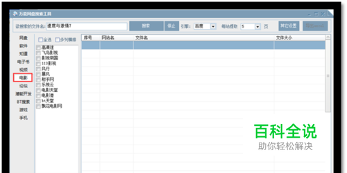 安装万能网盘搜索工具后,运行进入界面点击左侧的“电影”选项。