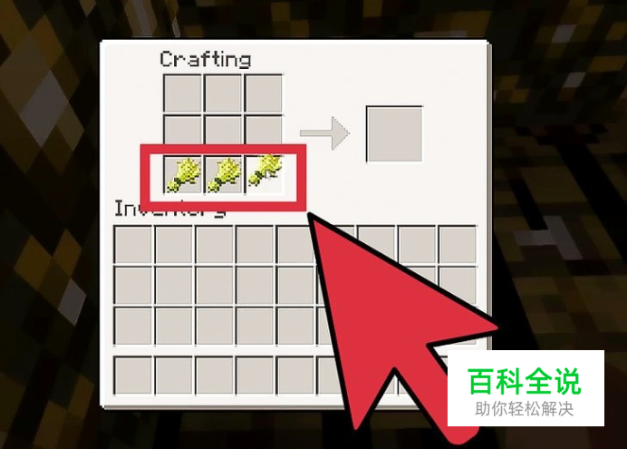 制作面包。3个小麦按下列方式放入制作台。 3个小麦水平放置在任何行,制作1个面包。