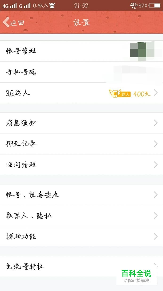 首先登录手机QQ,在QQ设置里面找到“账号管理”,如图所示。