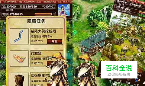 每日任务在场景左上角点开即可,玩家会发现需要三种道具来换取每日任务的奖励物品。三件道具分别在不同场景的不同地方,需要玩家在踏入江湖的同时并且探索江湖中的隐藏道具。