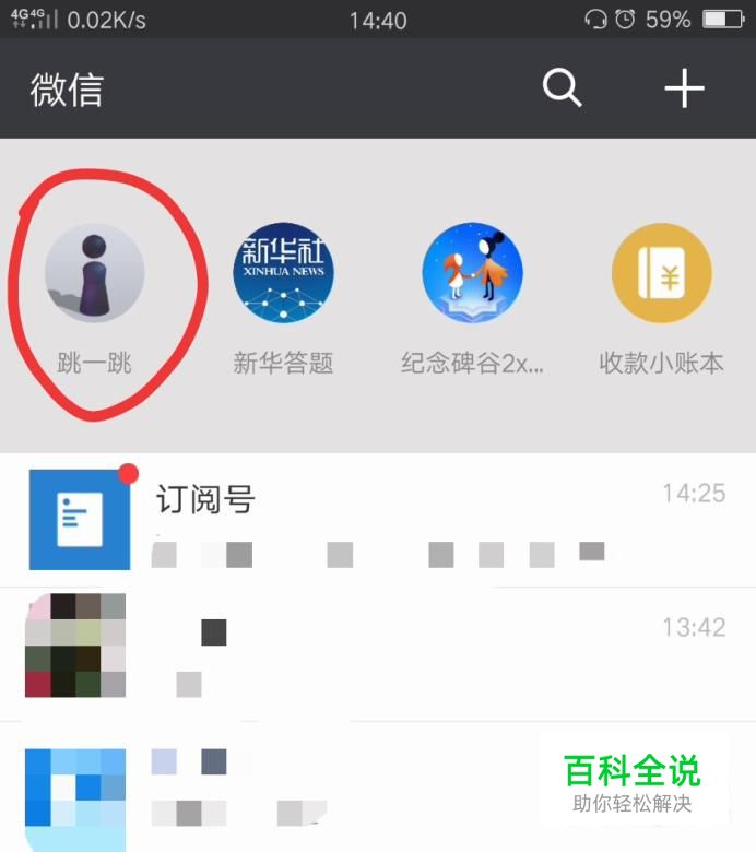 我们登录微信后,下拉屏幕,就可以点击进入微信跳一跳。