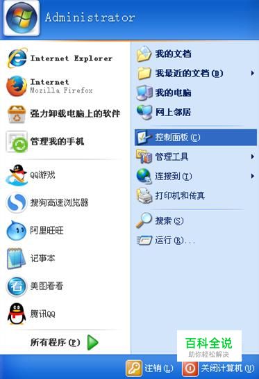 点击桌面左下角的“开始”,在弹出的界面选择右边的“控制面板”