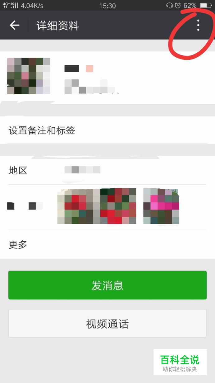 在联系人里找到你要拉入黑名单的好友,点开他的头像,然后点击界面右上方红色圈圈里面的符号。