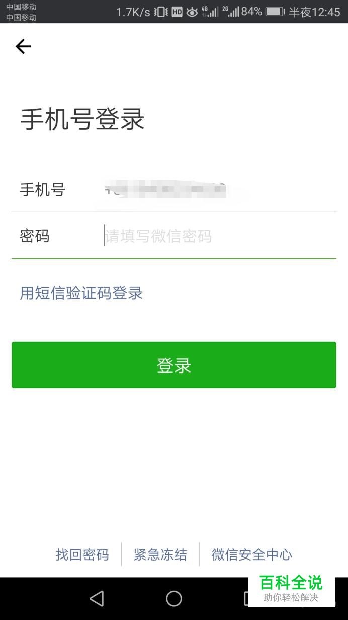 打开手机,点击微信,输入账号和密码登录,进入微信界面。如图