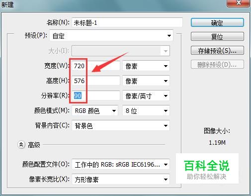 打开ps之后按下Ctrl+N键,在弹出的新建文件对话框内设置参数如图所示: