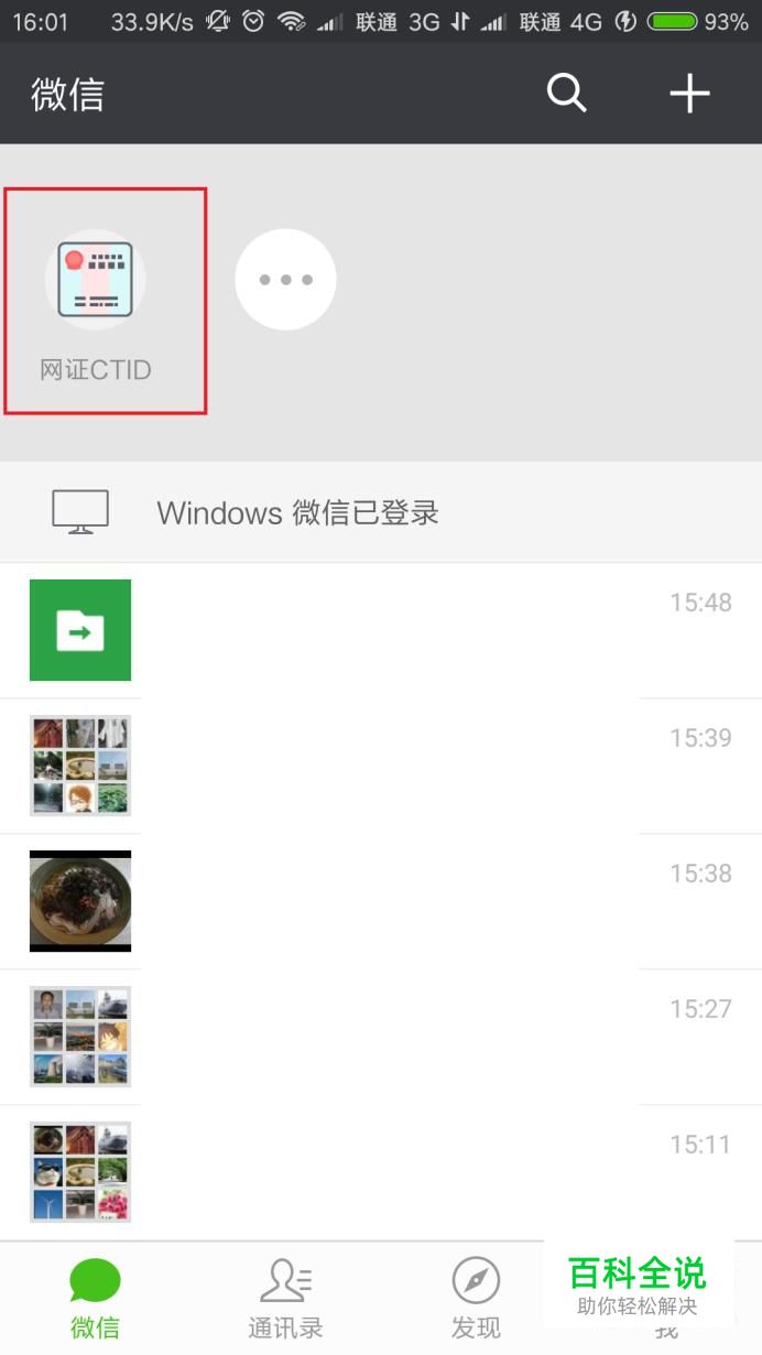 首先,打开微信应用软件,在应用软件消息窗口主页面中,将页面向下拉,找到“网证CTID”小程序。
