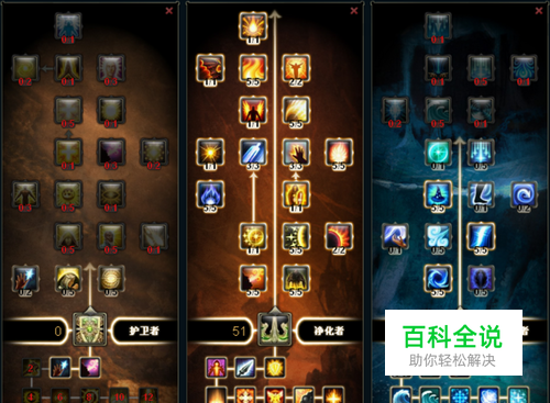 看了图,在看说明,主天赋无可争议的选择了净化者,强大的单补 强力的伤害吸收盾强大的救场能力,作为一个治疗净化者这系天赋除了缺少持续回血技能,基本堪称完美,也为了弥补这一缺点,所以副天赋选择了持续恢复能力较强的守望天赋,另外,净化者这一系之所以加满51点,并不是因为天赋树上的天赋全都很有用,而是因为树根上的这4个技能