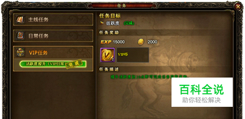Vip享有专属VIP日常任务。非VIP用户也可以点击查看任务内容,但可进行任务内容,但不可交任务。当玩家在VIP有效期内完成了任务,而后VIP过期了,将不显示VIP的任务的完成状态,再开通VIP以后,将可直接完成。