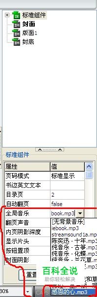 打开iebook超级精灵的软件,如果是添加整本杂志的背景文件,首选选中标准组件,在下面的属性里面会找到全局音乐,选择添加音乐文件——添加,在本地电脑上找到自己的音乐,添加进去后,把要做为背景音乐的音乐前面打上勾。这样在播放杂志时背景音乐就会是自己的音乐了