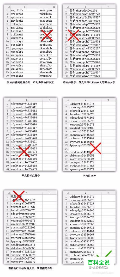 商家自己有券码需要导入礼券中,可以在编辑礼券信息中的“红包券码”设置里,选择“商家自定义券码”,并在下一步的“商家自定义礼券券码”中,上传礼券券码文件。 文件格式要求: 1、文件格式要求为xls/xlsx; 2、券码支持数字、英文字母或两者组合,不支持标点符号; 3、字符位数不超过18位; 4、为了券码的录入准确无误,表格内除券码外,不须填写任何其他信息。