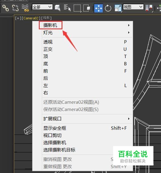 打开3dmax之后按下Ctrl+O键在弹出的对话框内找到我们的场景文件,然后再在视图里的摄像机选项,如图所示: