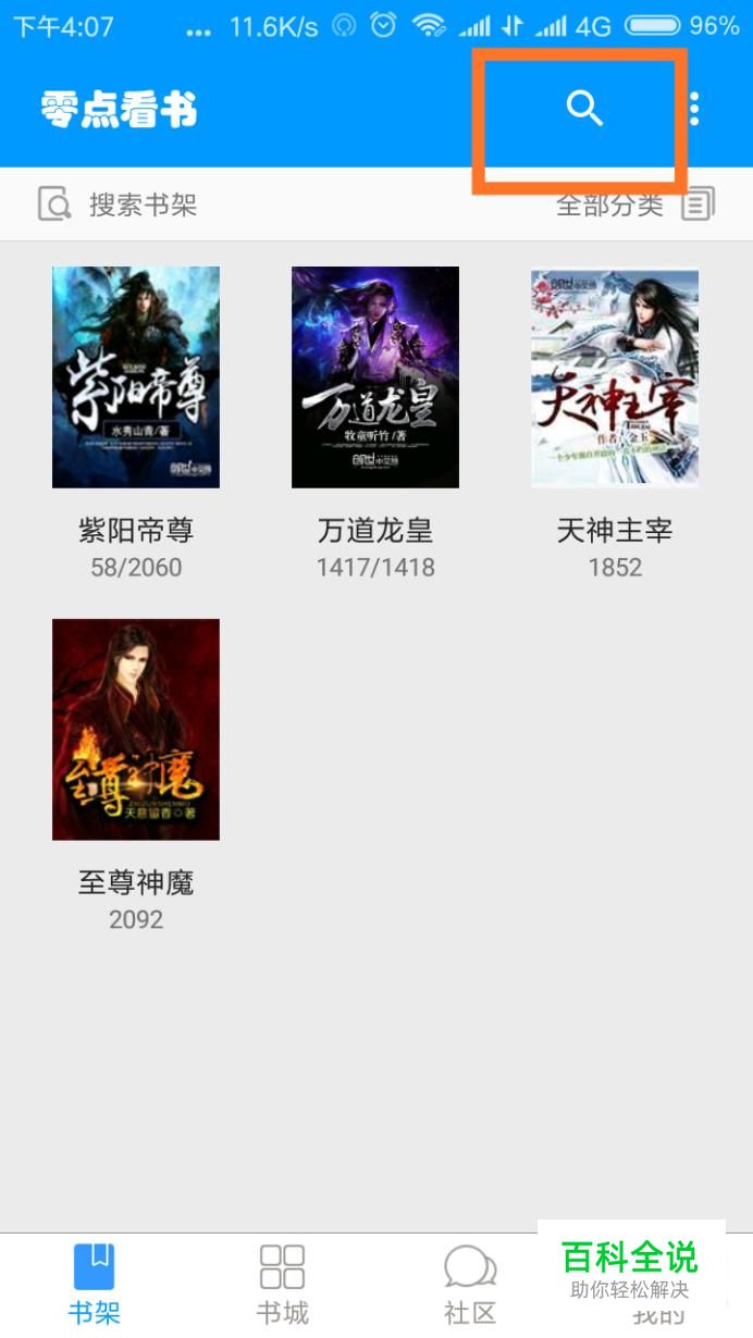 点击进入“零点看书”,点击搜索,输入你想要看的小说。