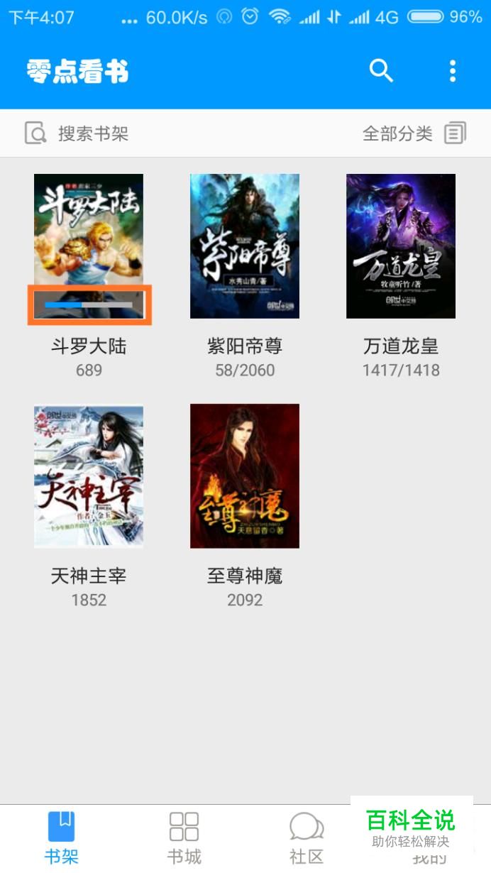 然后再返回书架,在书架终究会有你下载的那比小说,在小说上有下载进程,