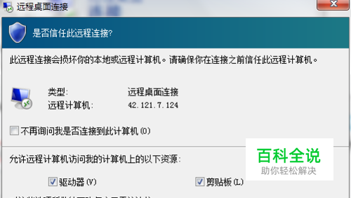 提示: 在 远程桌面连接 中,服务器身份验证可验证您是否连接到正确的远程计算机或服务器。此安全措施有助于防止连接到非预期的计算机或服务器,从而消除因为此错误连接导致暴露保密信息的可能性。 连接所必需的验证强度是由您的系统安全策略决定的,此策略由您的系统管理员设置。如果实际的验证不符合最低的策略要求,则有三个可用的身份验证选项供您选择: 连接并且不向我发出警告:使用此选项,即使远程桌面连接无法验证远程计算机的身份,它仍然会连接。 向我发出警告:使用此选项,如果远程桌面连接无法验证远程计算机的身份,则向您发出警告,以便您选择是否继续连接。 不连接:使用此选项,如果远程桌面连接无法验证远程计算机的身份,则无法建立连接。