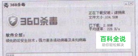 下栽完毕后,在【下栽完毕】对话框中单 击【运行】按钮,打开【360杀毒】对话 框,在其中可以查看软件的说明性信息, 以及文件在线下载安装的进度。