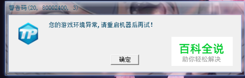 首先要了解为什么会导致游戏异常?第一点:电脑的确是有与检测系统有冲突的软件或者后台程序。 第二点:游戏遭到损坏所导致的游戏环境异常(丢失某些文件也会导致游戏异常) 第三点:游戏遭到修改(例如打游戏第三方补丁) 第四点:电脑进程含加载键盘记录器类的程序(就是病毒)