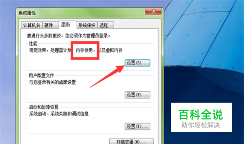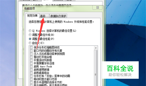 在弹出的新界面当中,选择第三项高级,第一栏的性能,然后点击设置。