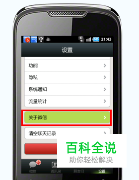 微信进行升级操作的具体方法:打开微信主面板,切换至”设置“选项卡,然后点击”关于微信“项并进入。