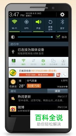 然后用手从屏幕顶端向下滑动调出设置界面!