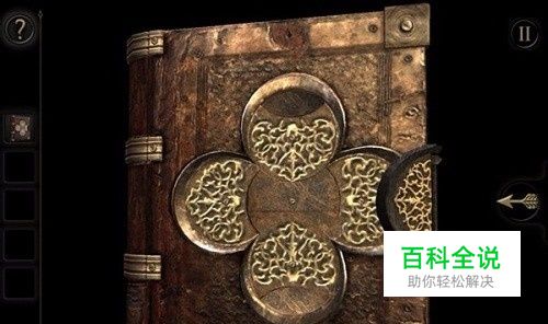 围绕宝箱观察,似乎没有什么可以切入的地方,那就先用目镜观察一下宝箱,结果发现有一个边角有异样,用手点一下,得到了一本书。