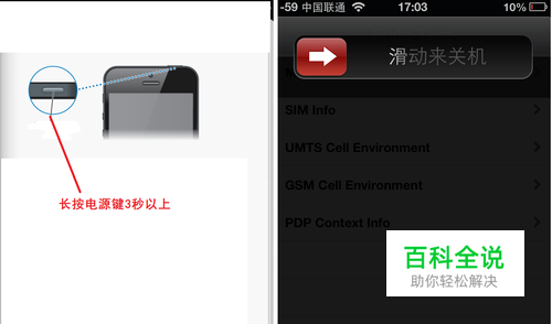 关机再重新启设备,iPhone 一旦重启,整个系统会重新初始化,从而解决软件故障导致 iPhone 不能识别显示 SIM 卡的故障。 操作方法: 一、长按手机顶端的“ 电源键”,然后会在屏幕上方出现一个红色关机滑块,然后滑动箭头关机。 二、最后再按“ 电源键”重新开机。