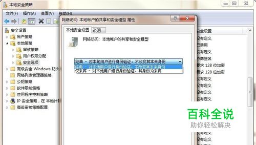 系统登录窗口默认以guest用户登录,无法更改时,点“本地策略”--“安全选项”,更改策略"网络访问: 本地帐户的共享和安全模式" ,为 经典模式 即可。