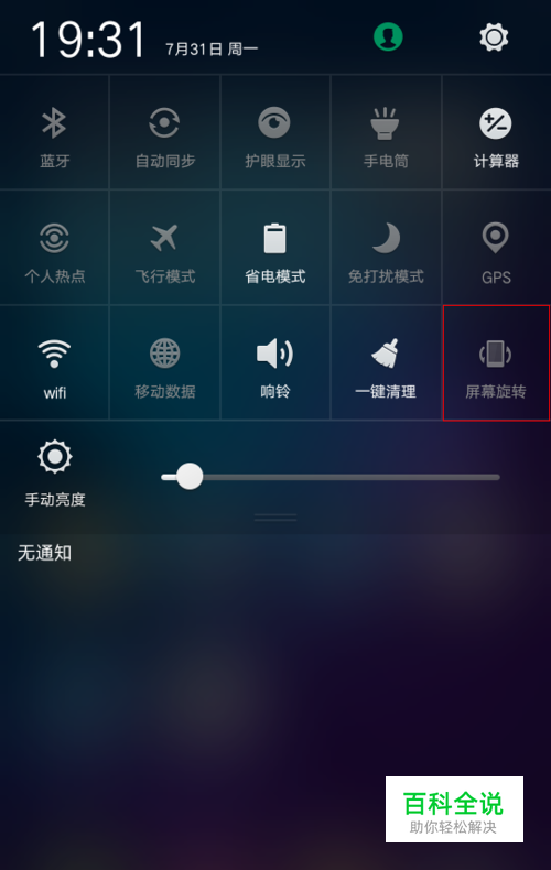 下拉后点亮“屏幕旋转”图标