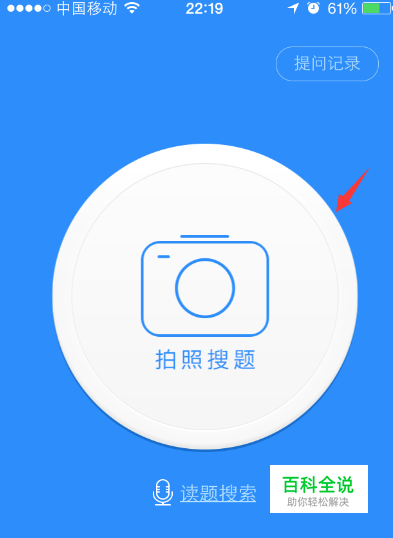 然后我们返回来说下第二种提问方式,返回主界面点击“读题搜索”,并在读题搜索界面点击“开始读题”按钮。