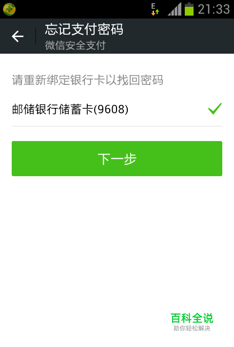 然后你就会看到重新绑定银行卡以找回密码,接着按下一步,如图所示