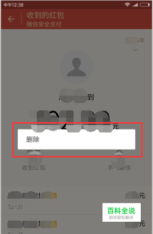 7、在红包记录窗口,选择要删除的记录长按住,在弹出删除项上点击删除即可。