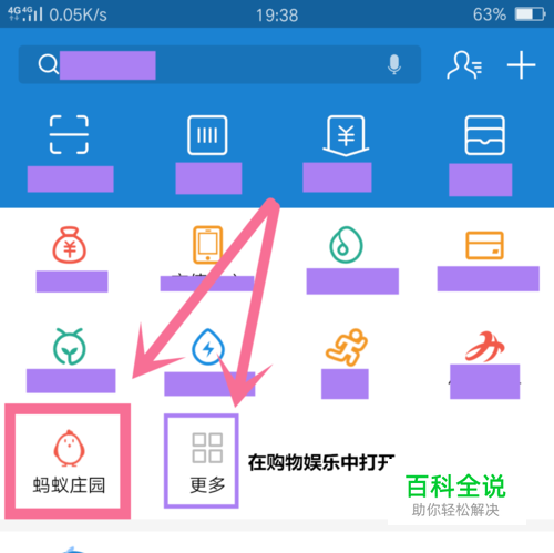 首先打开支付宝在其首页中进入“蚂蚁庄园”(设置庄园靠前显示);如果未设置庄园靠前设置,则点击更多调出全部功能,在“购物娱乐”中打开“蚂蚁庄园”。如图所示
