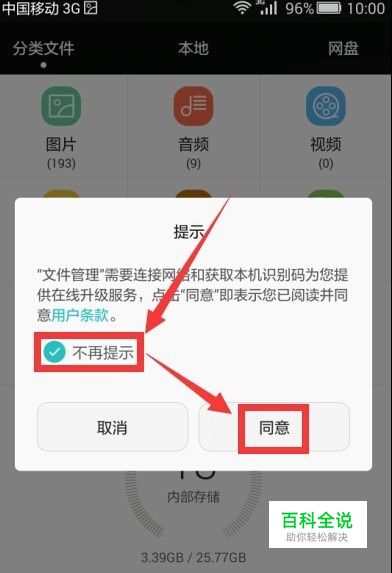 这时候会弹出提示 文件管理要链接网络并且获取本机唯一识别码 点按同意即可