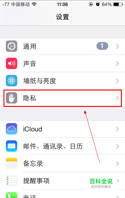 首先打开手机的设置功能,打开之后稍微往下拉一点,找到隐私设置,点击进入。