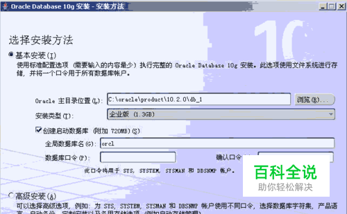 之后,系统将打开如下界面:选择安装方法。 ORACLE提供了两种安装方法:基本安装(I)和高级安装(A)。从上面的图中我们可以看到两种安装方法的不同之处,Oracle默认是选择基本安装: